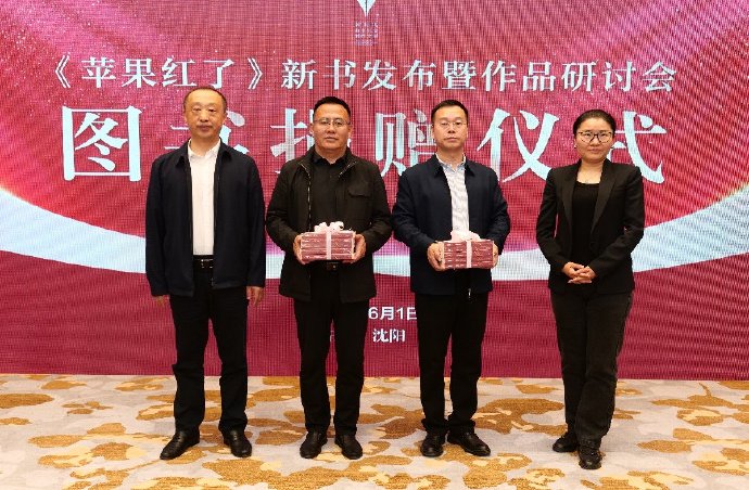 会议最后,沈阳出版社党委书记、社长张闯和作家出版社副总编辑颜慧分别向丹东市委宣传部及沈阳全民阅读组委会办公室捐赠《苹果红了》。